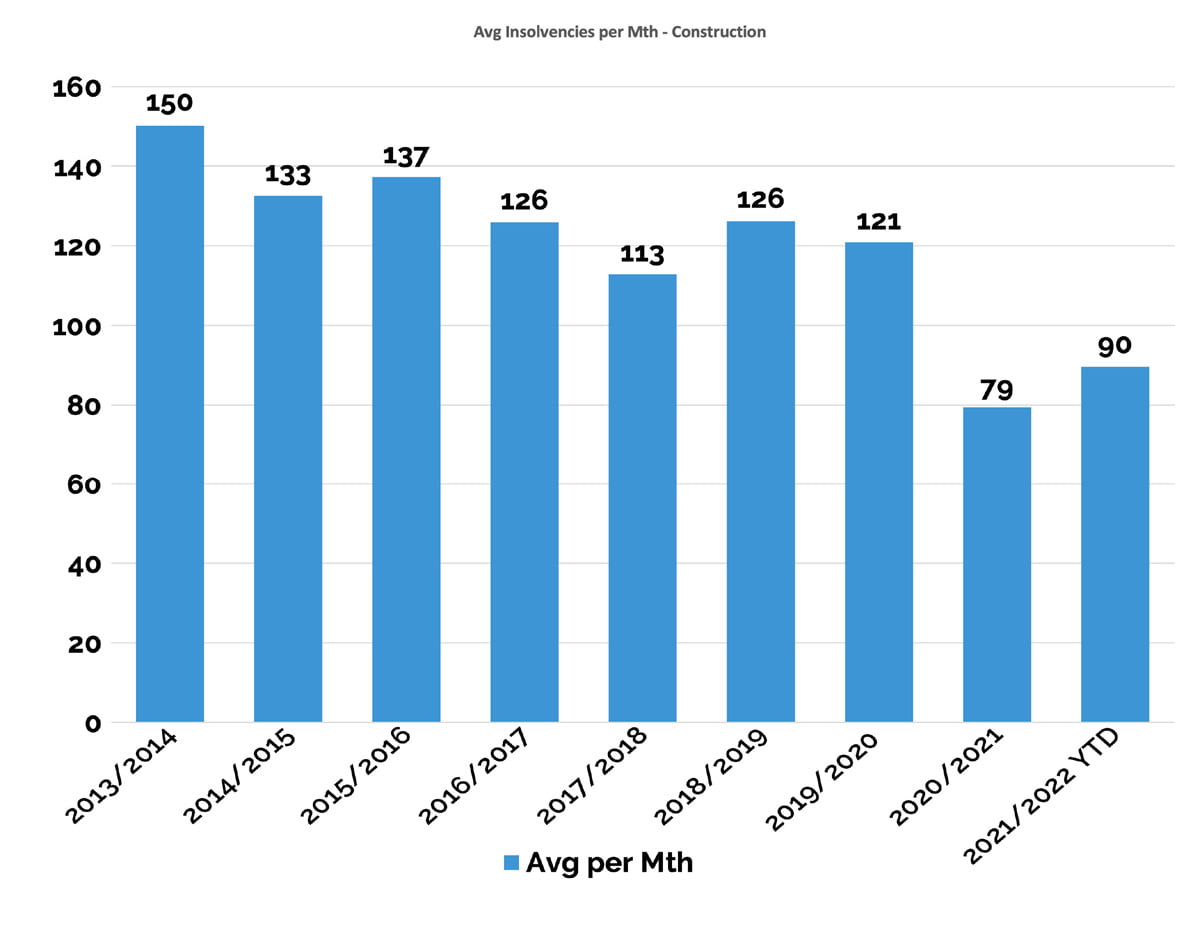 Despite the spate of high-profile company collapses over the last few months, which have sent shockwaves through the industry, overall insolvency numbers remain low compared to historical numbers. However, insolvency experts are warning that the construction industry is a “bubble waiting to burst”, and that more companies will go under in the coming months (S Sharples News.com.au 25 Feb 2022) . This is probably accurate, but just how many will go under is the burning question.