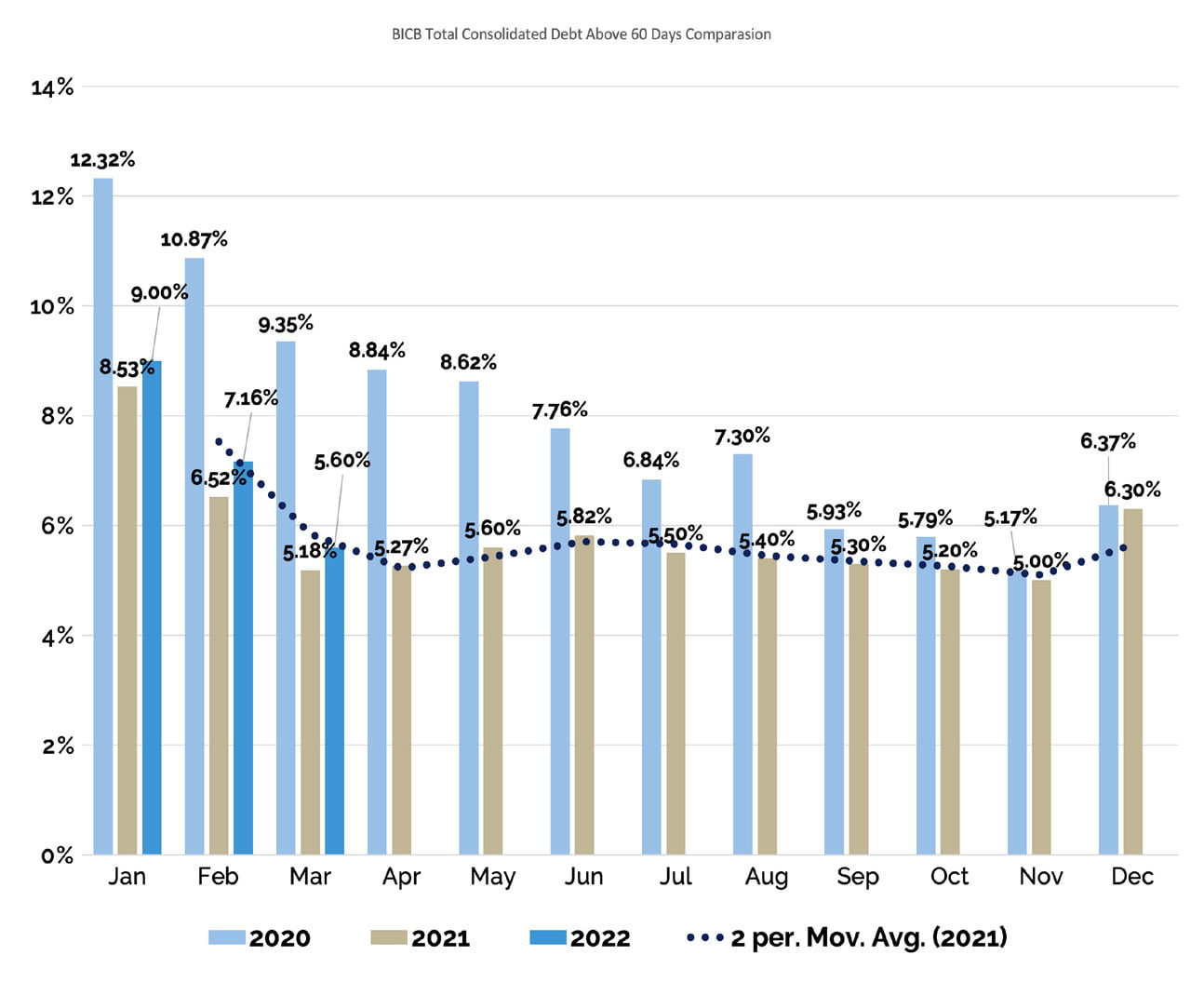 BICB’s data clearly shows how the debt percentage above 60 days in the construction industry has decreased during the Covid era. This trend is more than likely a legacy of the stimulus measures. Recent feed-back from BICB members suggests that payments are continuing to be paid within the agreed terms, or close to terms in most cases. This anecdotal information is reflected in the payment data, below.